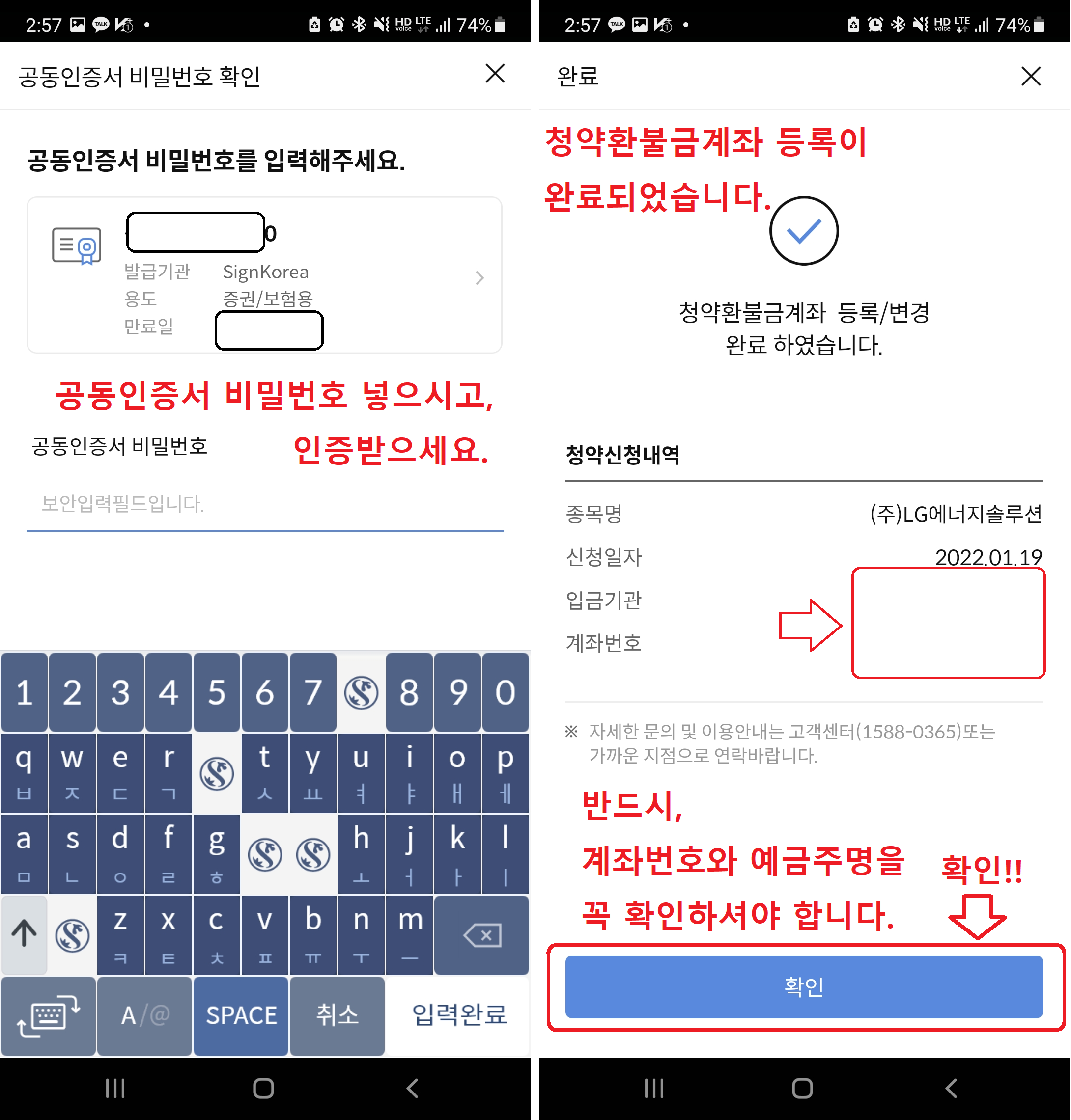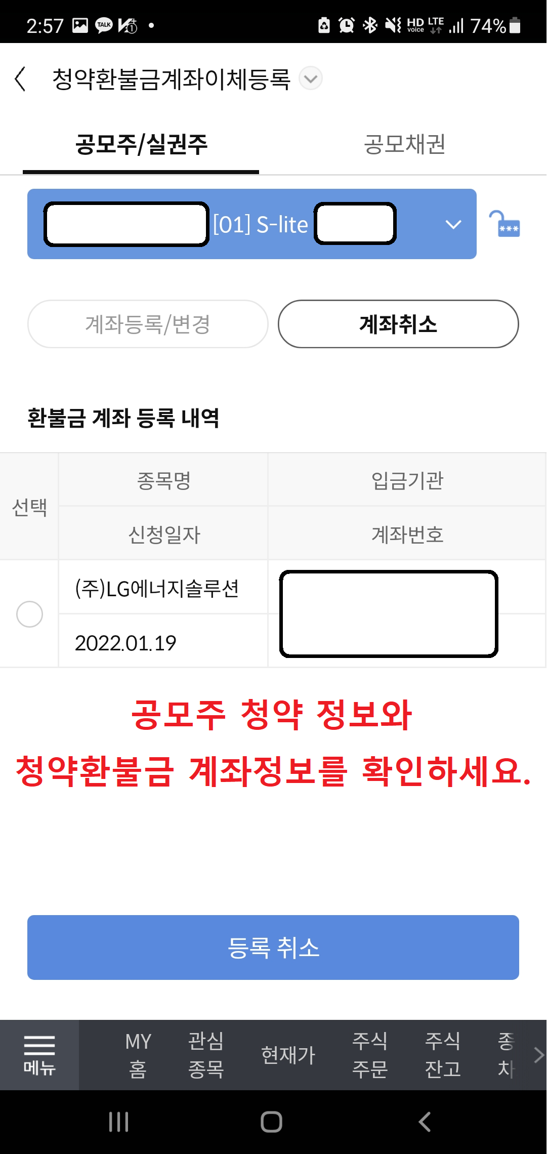 공모주 청약 정보와 청약환불금 계좌정보를 확인하시고,