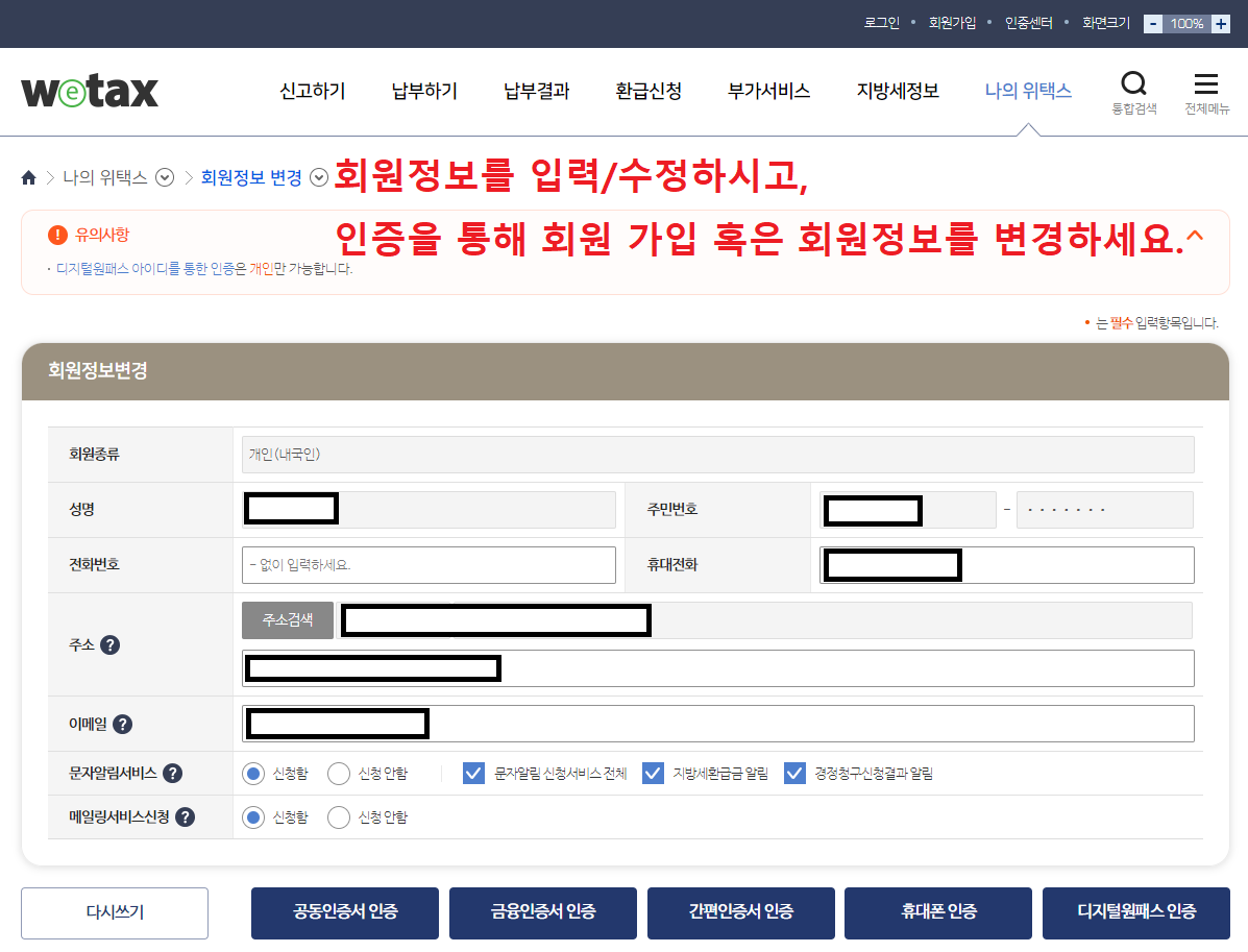인증을 통해 회원 가입 혹은 회원정보를 변경하세요.