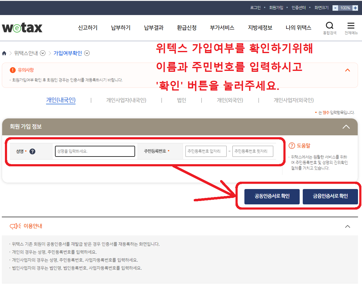 위텍스 홈페이지에 접속해주세요. ( https://www.wetax.go.kr/ )