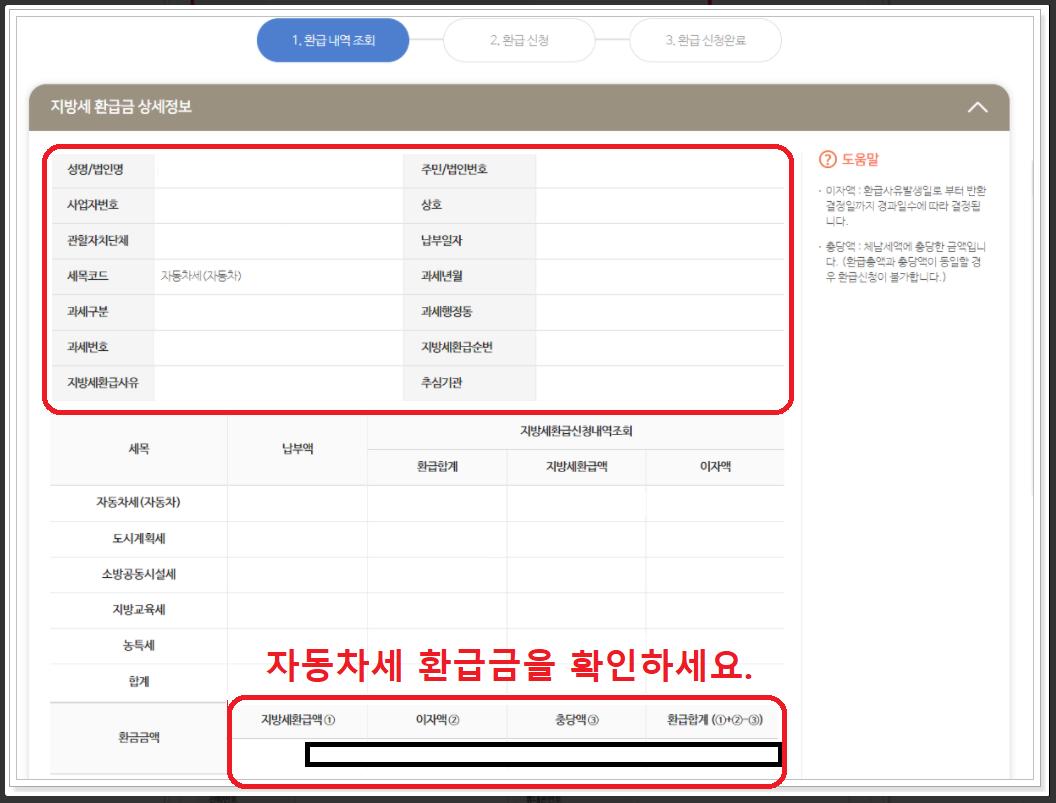 다만, 위텍스는 자치단체에서 전송한 자료를 연계하여 화면으로 보여드리는 서비스를 제공하고 있으므로, 먼저 관할 자치단체에서 과오납에 대한 반환결정이 필요합니다.