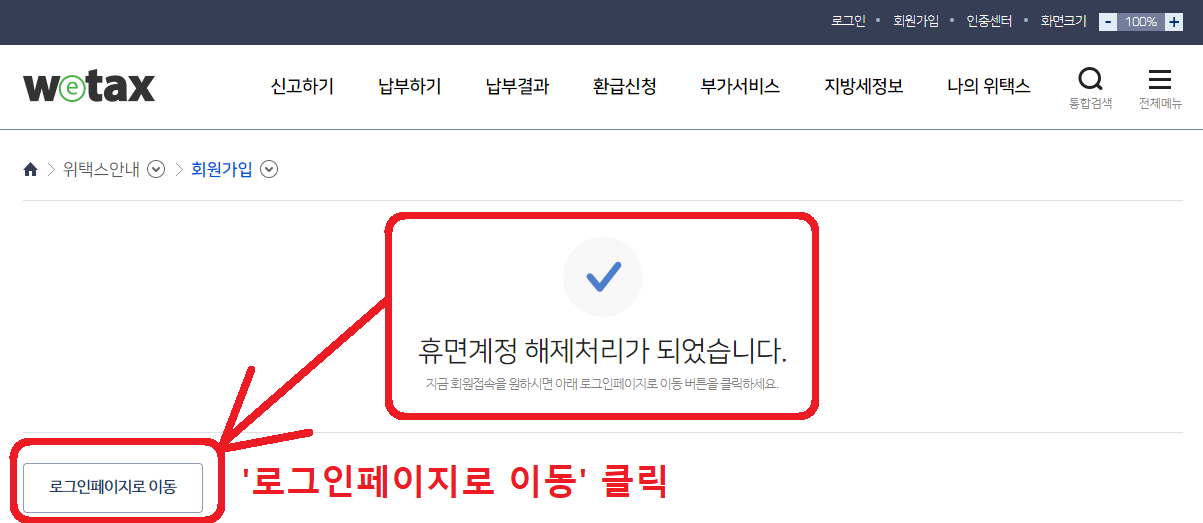 '로그인페이지로 이동' 버튼을 클릭하세요.