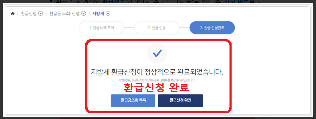 지방세 환급신청이 정상적으로 완료되었습니다.