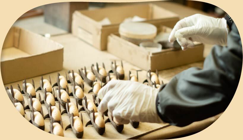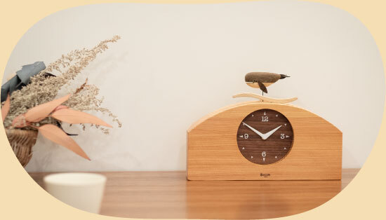 키코리 시계의 모든 작업은 장인이 수작업으로 수행합니다. 가공이 어렵다고 여겨지는 카라 소나무의 독특한 감촉을 살린 상품이 생기는 것은 수작업 특유의 장인이 만들어내는 섬세한 작업에 의해 보다 맛 깊은 것이 됩니다.ㅣ