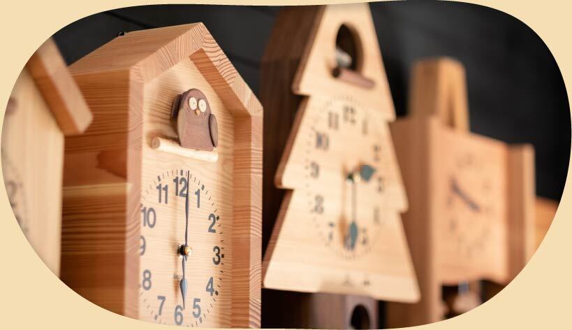 키코리의 시계에 사용되는 무브먼트는 모두 일본산의 것을 사용. 특히, 뻐꾸기 시계에 탑재되고 있는 리듬 시계 공업제 뻐꾸기 무브먼트는 일본 국내에서 유일하게 수작업으로 조립되고 있는 것입니다.