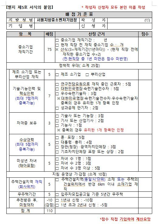 ☞ 잘 모를 경우 일단 배점기준표에 체크한 후 관련서류를 함께 제출