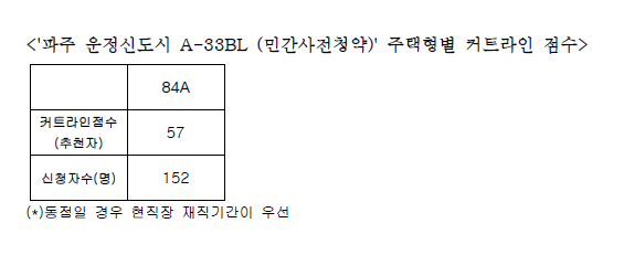 (발표) 중소기업장기근속자 주택특별공급 커트라인 안내 (파주운정신도시 A33BL 우미린(민간사전청약))