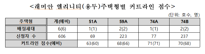 [발표] '래미안 엘리니티(용두)' 중소기업장기근속자 주택특별공급 커트라인 안내