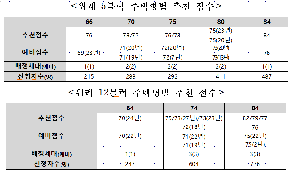 * 커트라인 점수이므로 세대수가 다수일경우 마지막 당첨자 점수임