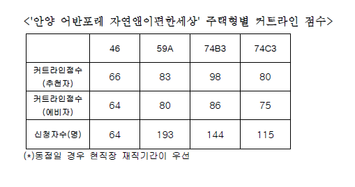 (발표) 중소기업장기근속자 주택특별공급 커트라인 안내 (안양 어반포레 자연앤이편한세상)
