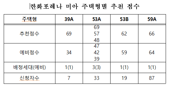 (발표)'한화 포레나 미아' 중소기업장기근속자 주택특별공급 대상자 추천점수 안내