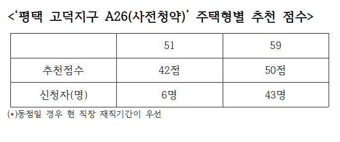 (발표) 중소기업장기근속자 주택특별공급 커트라인 안내 (평택 고덕지구 A26블럭)