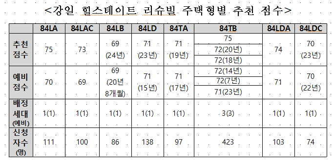 (발표) 중소기업장기근속자 주택특별공급 커트라인 안내 (디엘본가평설악)