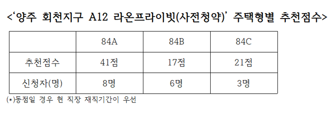 (발표) 중소기업장기근속자 주택특별공급 커트라인 안내 (양주 회천지구 A-12 라온프라이빗)
