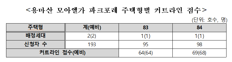 (발표) '용마산 모아엘가 파크포레' 중소기업장기근속자 주택특별공급 커트라인 안내