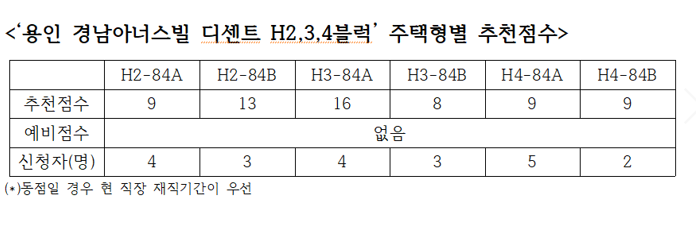 (발표) 중소기업장기근속자 주택특별공급 커트라인 안내 (용인 경남아너스빌 디센트)