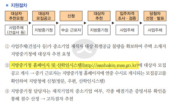 ① 사업주차(건설사 등)가 중소기업 재직자 대상 특별공급 물량을 확보하여 주택 소재지 지방중기청에 대상자 추천 요청
