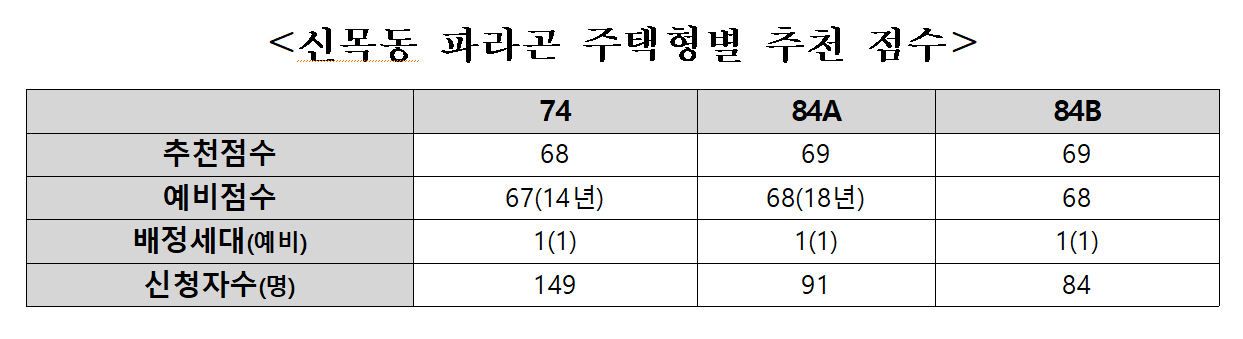 'DMC SK VIEW I PARK Foret' 중소기업 장기근속자 주택특별공급 커트라인 및 신청자수를 아래와 같이 안내드립니다.